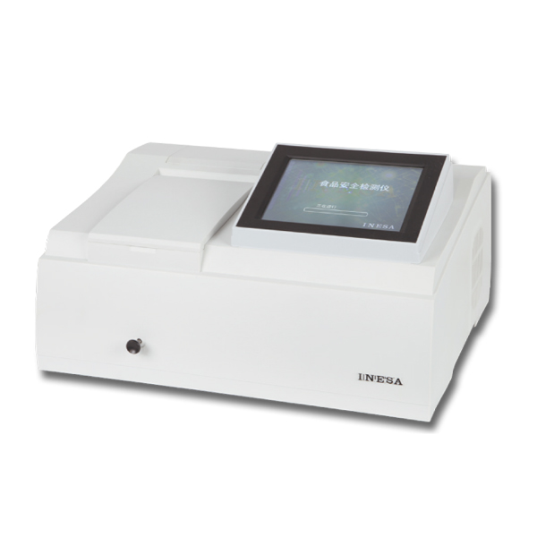 ,酶催化神經(jīng)傳導(dǎo)代謝產(chǎn)物(乙酰膽堿)水解,其水解產(chǎn)物與顯色劑反應(yīng),產(chǎn)生黃色物質(zhì),用分光光度計測定412nm下吸光度隨時間的變化值,計算出抑制率,通過抑制率可以判斷出樣品中是否含有有機磷或氨基甲酸酯類農(nóng)藥的殘留。可以實現(xiàn)有機磷及氨基甲酸酯類農(nóng)藥殘留量的現(xiàn)場快速檢測。